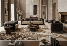 This stunning loft space perfectly blends modern minimalism with warm, inviting tones. The large floor-to-ceiling windows let in an abundance of natural light, which beautifully contrasts with the rich earthy tones of the furniture. The plush, brown sofa and soft armchairs add depth and texture to the room, while the sleek coffee table and understated decor create a harmonious balance between comfort and modern aesthetics. The inclusion of greenery, like the tall potted plant, brings a natural touch, making this loft a perfect example of how to design a cozy, sophisticated space in a large, open apartment.