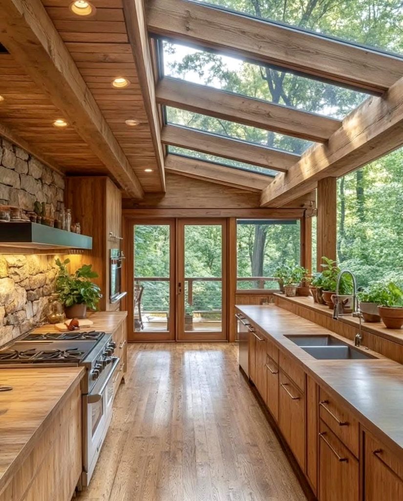 7. Rustic Kitchen with Skylight and Natural Finishes