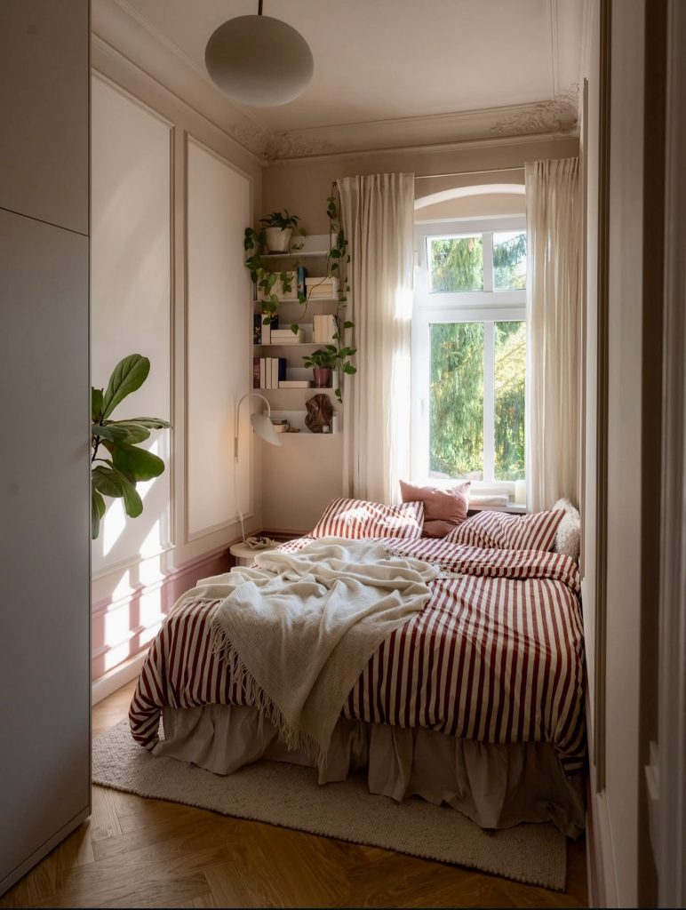 A lush, plant-filled retreat like this one shows how coastal textures and green accents can infuse any bedroom with organic energy. The hanging plants and soft natural fibers create a space that feels alive—perfect inspo for those who love handmade ideas or nature-inspired decor ideas. The earthy palette and woven rug bring in a cozy, grounding vibe, while the leafy details remind us that sometimes the best design ideas come straight from nature itself.