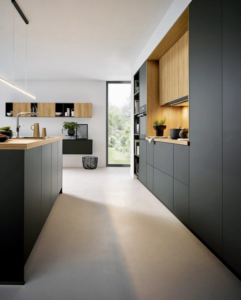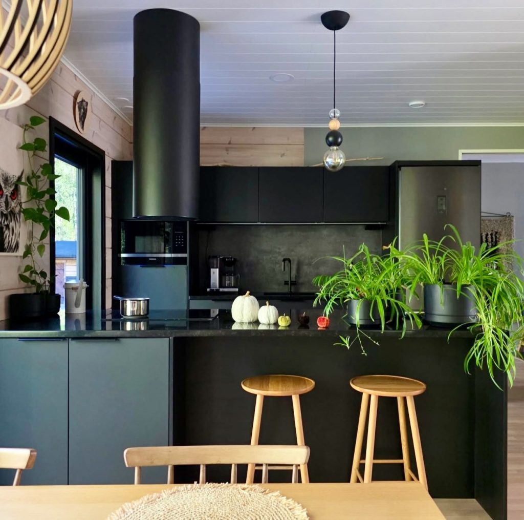 17. Nature-Inspired Modern Black Kitchen