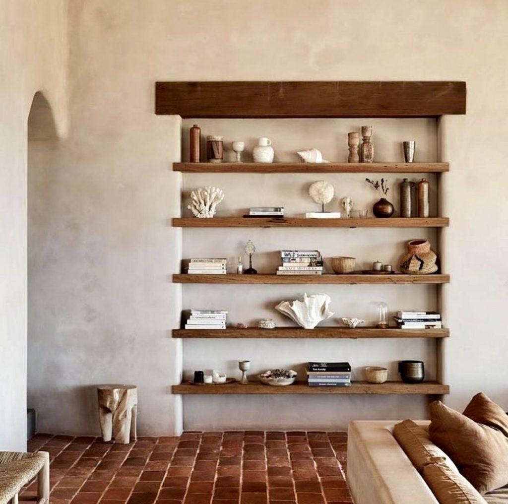 20. Rustic Shelving for Earthy Warmth & Texture Depth