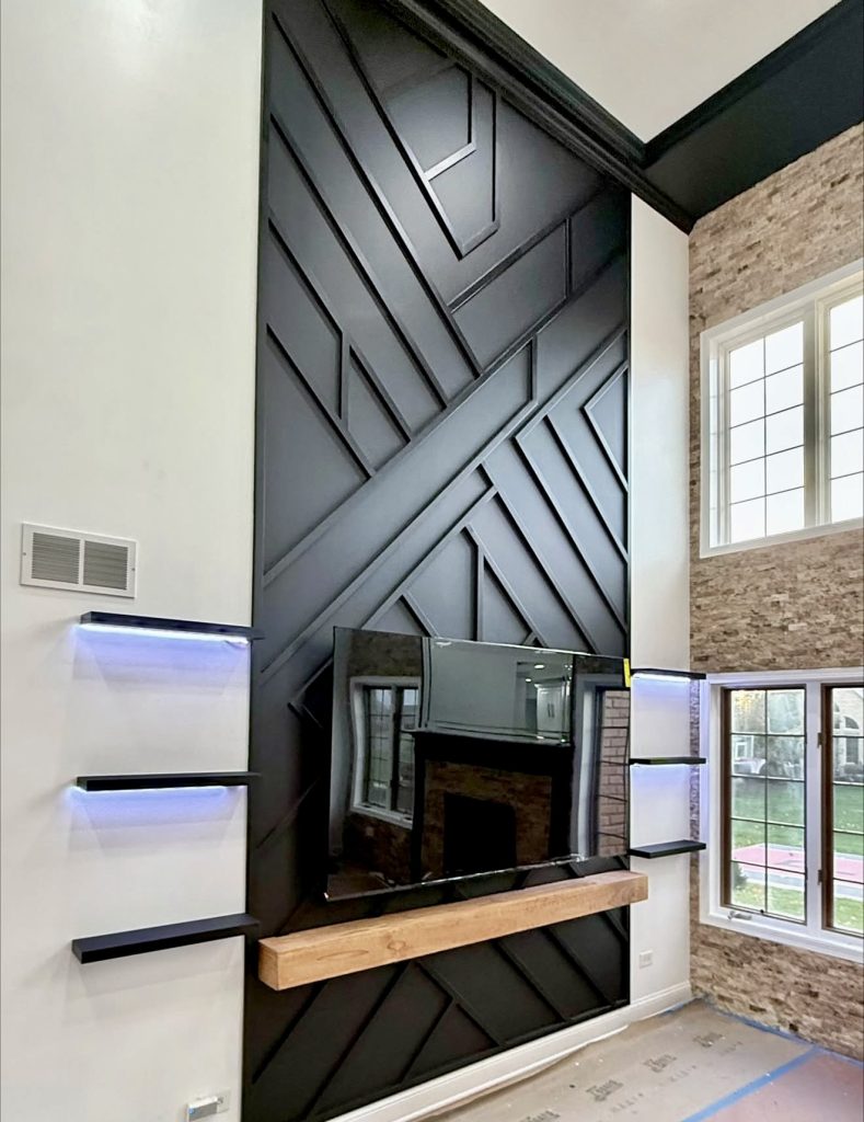 24. Dramatic Black Feature Wall With Integrated TV Shelving