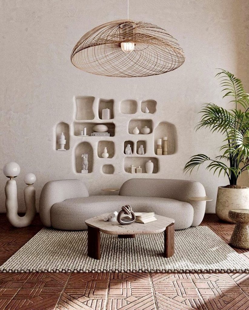7. Organic Carved Shelving for a Sculptural Modern Living Room