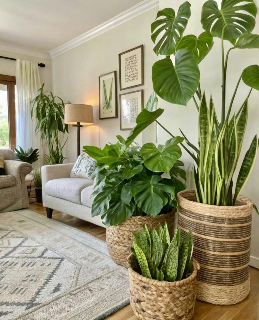 18. Natural Textures and Plants in a Warm, Earthy Living Room