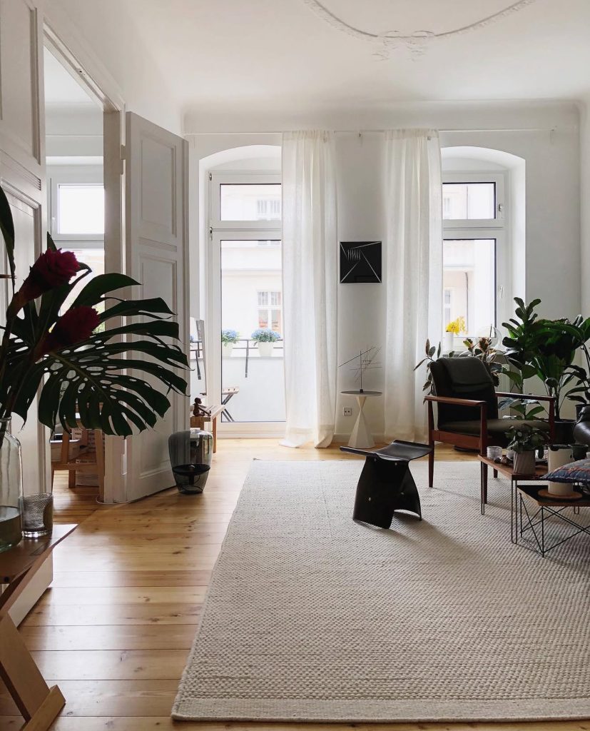Scandinavian calm finds its essence in this light-filled room with white linen curtains that fall graciously to the ground. The uncluttered movement gives the impression of freedom within nature, appearing utterly suited to tall windows or bay window configurations. The style feels simultaneously modern and rustic, a fusion gaining traction in 2026 trend reports across Europe and the U.S. For those drawn to simplicity with warmth, this curtain design offers a sense of ease, making even urban spaces feel like a calm weekend retreat.