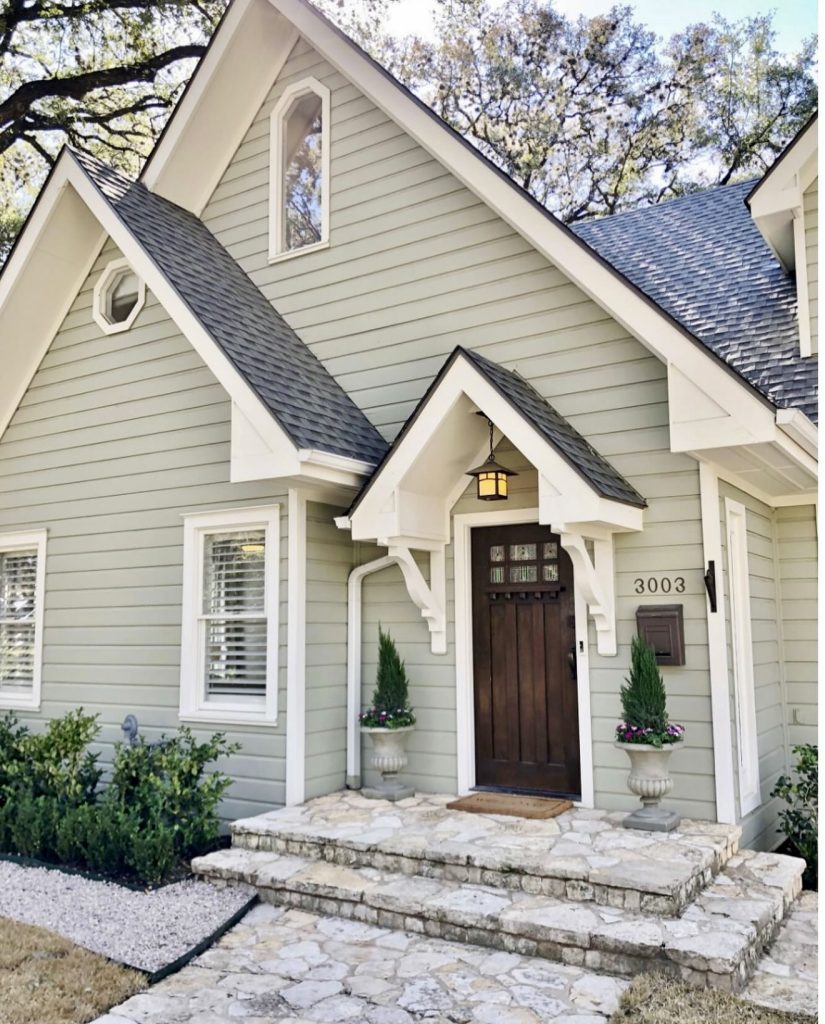 One of the most enduring 2026 trends is the return of sage green exteriors. This gentle, earthy hue has a soft coastal undertone that feels welcoming without being overpowering. Paired with crisp white trim and a dark brown wooden front door, it’s the kind of palette that nods to tradition while still feeling fresh. Sage is especially appealing because it works beautifully in suburban neighborhoods and historic districts alike. Design experts often point out that shades like olive green and sage act as natural neutrals, blending into landscaping and stonework effortlessly. This palette is ideal for homeowners who want a peaceful yet stylish curb presence.