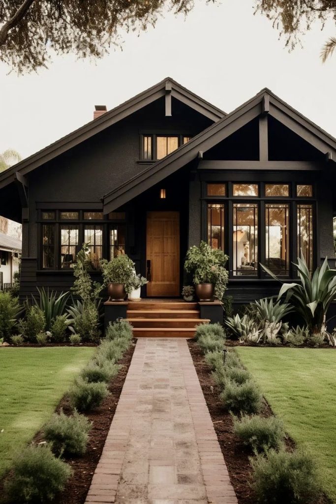 Moody palettes will keep streaking across the charts in 2026, and this bungalow elegantly demonstrates that dark exteriors need not be foreboding or off-putting. Sprayed charcoal-black with a warm wood accent, it achieves a cozy and yet dramatically beautiful curb appeal. With extravagant landscaping all around, the trim and door brown undertones serve as colors to level to the vigor of the color. Designers stress this look as one of bold moves honoring the charm that comes with small, traditional abodes. Dark should never be synonymous with cold; it should feel very rooted and welcoming indeed.