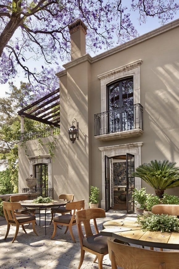 This refined residence bears great projection for beige up to 2026, endowed with ornate stonework and wrought-iron detailing. The muted walls act as the ground for the architectural accents to shine through, almost creating an effortless European feel. Stone mixed with soft earth tones feels grounded and sophisticated in a way that hints toward an Indian style influence in its use of natural colors. Usually, beige gets cast off as a plain color, yet here it demonstrates how warm neutrals-warm due to the design elements such as iron balconies and arched windows-can carry so much richness.