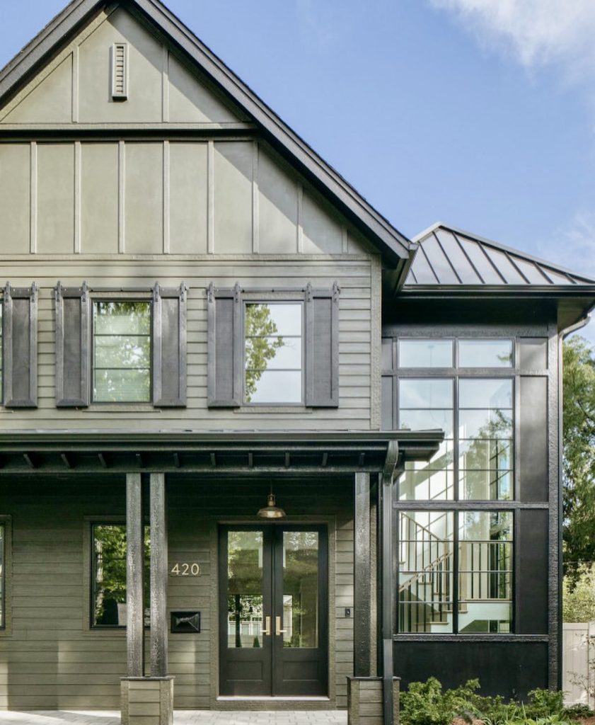 If there’s one shade stealing the spotlight in 2026 trends, it’s dark green. Rich and dramatic, this tone instantly modernizes a home’s exterior while staying grounded in earth tone inspiration. The mix of sleek black accents and wide-pane windows brings out the moody side of this palette, perfect for homeowners wanting a bold statement. This color works particularly well in wooded areas, blending seamlessly with nature while still feeling elevated and stylish. Pairing dark green with black trim is a striking choice, showing how daring contrasts can redefine curb appeal.