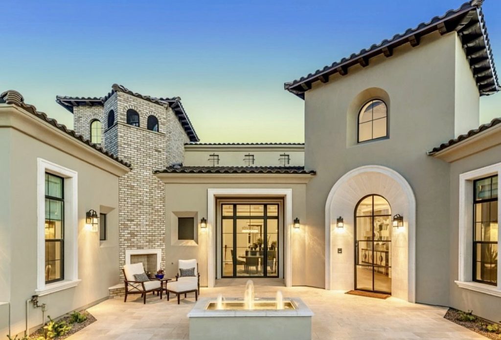 A hallmark of 2026 trends is the rise of earth tone palettes inspired by European and Indian style architecture. This Mediterranean-inspired home shows how soft taupe paired with creamy stone accents creates a rich yet calming aesthetic. The clay-tiled roof and arched doorway add authenticity, while the light beige walls enhance the sense of timeless luxury. With the addition of a courtyard fountain and outdoor seating, this color palette proves that beige and stone combinations are far from plain—they embody sophistication. This is an excellent option for homeowners in warm climates seeking a palette that reflects sun-drenched landscapes.