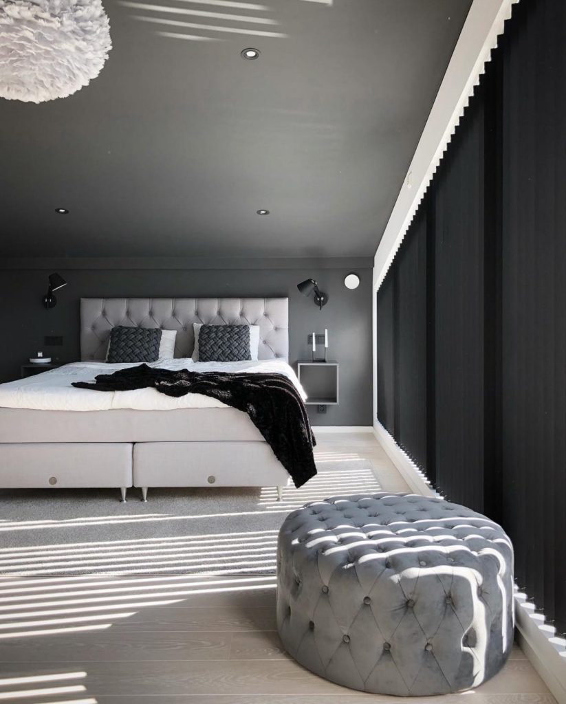 7. Dramatic Dark Grey Bedroom With Modern Minimalism