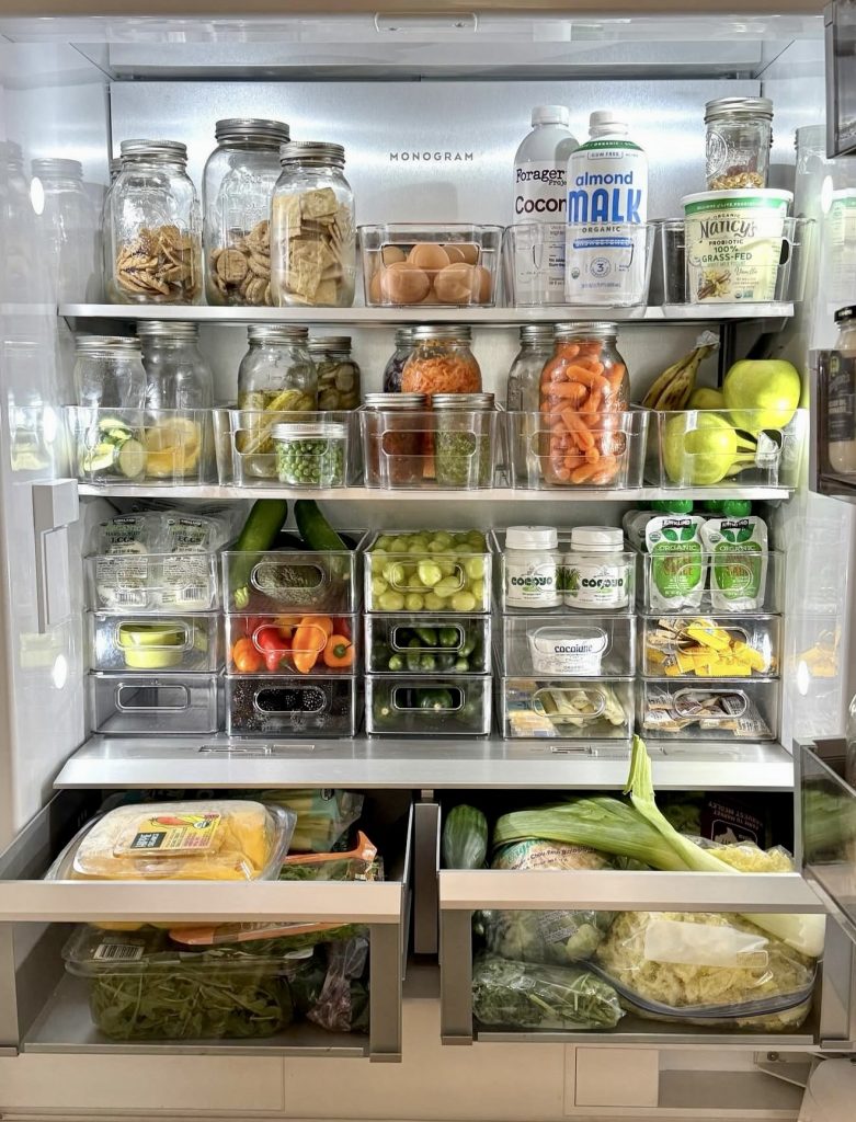The 2026 fridge aesthetic is all about visibility and freshness. Clear containers, glass jars, and modular trays keep every ingredient in sight—from crisp greens to dairy products. This system doesn’t just look good; it saves time, reduces waste, and supports mindful living. It’s an efficient and clever approach loved by professional chefs and home cooks alike. Use Ikea storage bins or even Dollar Tree finds for an affordable DIY version. The transparent design also aligns with modern commercial standards for hygiene and ease of use—perfect for anyone who loves cooking and sustainability.