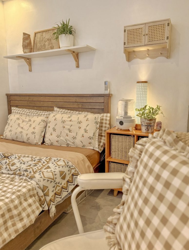 A blend of gingham patterns and soft florals defines this nostalgic, countryside-inspired interior design. Warm lighting and wood furniture create depth and familiarity, proving how decor ideas rooted in comfort never go out of style. The woven textures and small greenery touches bring balance to the room ideas. Everything here feels intimate and personal—ideal for cozy ideas that celebrate tradition with a modern sensibility. It’s a room that whispers calm and comfort in equal measure.