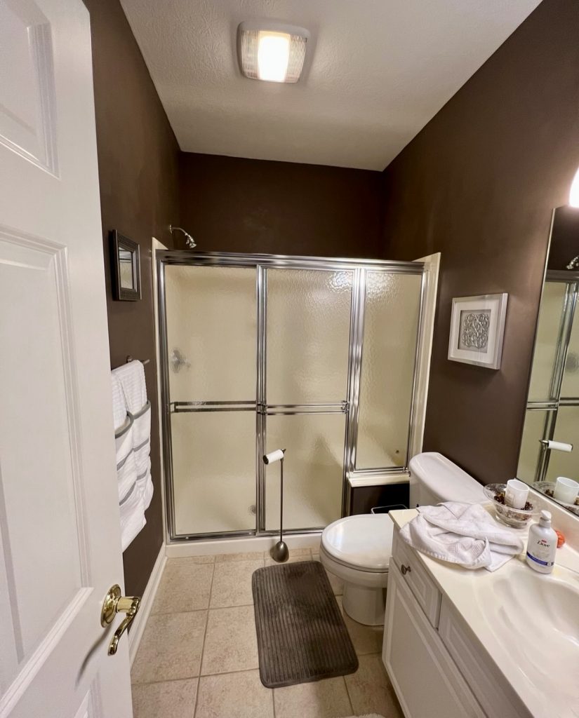 This compact bathroom is a familiar starting point for many U.S. homeowners—practical but dated, and full of untapped potential for anyone ready to explore remodel ideas in 2026. The alcove shower with sliding doors offers a basic foundation that could easily evolve into more modern ideas with shower or even walk-in shower ideas depending on the project goals. Its chocolate-brown walls create an opportunity for a fresh color update, while the single-sink vanity could be replaced with something offering better storage ideas. Spaces like this are ideal for reimagining a smarter layout without major structural changes, proving that even the most ordinary bathrooms can be transformed with thoughtful design choices.