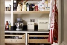This charming open pantry proves that even the most functional spaces can be deeply aesthetic. There is a rhythm formed by rows of glass jars and the shelves in front of them remain open, allowing full access in order to prepare meals. It’s a great system for those who love cooking or baking from scratch — every spice, grain, and bean has its place. The lower cabinetry is concealed behind a striped curtain, giving a relaxed French country effect. It would be perfect in a kitchen or a small flat and will promote both functionality and individuality.