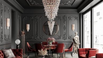 This design succeeds by mastering contrast and repetition. The stark black and white patterns provide a crisp contrast against the softer grey and cream, preventing the space from feeling bland. Repetition of the stripes unifies the dining and lounging zones, even though they’re distinct areas. Plus, the pops of yellow in the accent pillows act as a perfect, unexpected focal point, drawing the eye without overwhelming the primary palette.