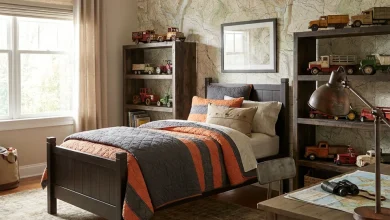 This bedroom shows grown-up restraint in the way it uses soft textiles, neat cushions and several layers of color. Luxury is brought into the room through the throw, ribbed nightstand and gold accessories without being too much. The design is graceful and also personal which makes it ideal for a person who wants grown-up delicacy and quiet style in jewelry.