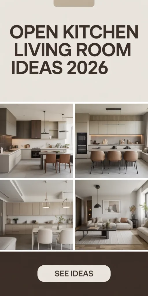 After filtering through hundreds of options, we narrowed it down to 27 ideas that actually deliver, covering everything from Modern Farmhouse to Scandinavian and Minimalist styles, with options ranging from an accessible $50 to a more luxurious $15,000. Each idea comes with direct product links so you can recreate the look with ease. Open kitchen living rooms in 2026 are all about seamless flow and intentional design choices that make even compact spaces feel grand.