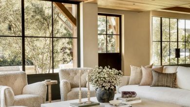 This room is a Sunday afternoon: it is casual, layered and warm. Lived-in rectangle living room, linen low-slung sectional and matching ottomans set the tone of the room. The homey centre table (with piled books and fresh branches vase) takes the room to another level of thoughtfulness that can also be defined as charming. In this case, lounging and reading furniture prevail, whereas the huge windows with black frames swoop serenity. A neutral carpet grounds the room, and it has shown that you do not have to use bright colors to have a depth. And in case you want some decor ideas as enticing as kicking off your shoes, this setup is a lesson in easygoing elegance.