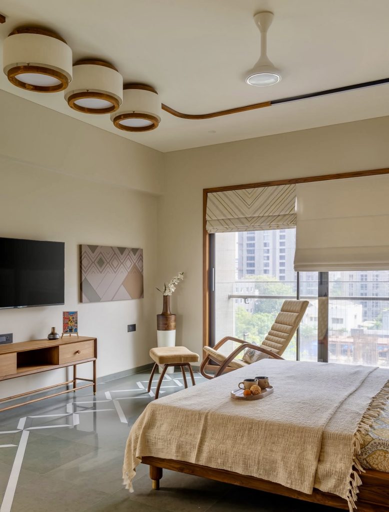 The space exudes the dynamic trend in modern luxury in Indian interiors with natural elements mixed with an earthy, modern interior plan perfectly designed to contrast natural wooden beds with architectural lamps and silky flooring to complement the warmth with precision to perfection. The space honors tradition in terms of texture and morphology while being undeniably modern to the core—it’s a fresh take on Indian interiors to perfection.
