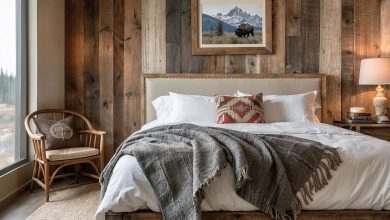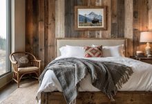 This bedroom is a perfect fusion of Japanese minimalism and Scandinavian calm, often referred to as Japandi. A refined sense of serenity comes from the combination of soft earth tones, a low platform bed along with rattan-inspired lighting fixtures. The delightful atmosphere of this area works best for people who admire sleek simplicity, as it is well suited to small living spaces and contemporary single-family homes. Linear architectural elements and natural surface details add warmth to this subdued yet masculine color scheme. It’s a haven for the quietly confident.