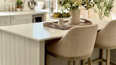 Serano’s use of deep-colored stools, old cabinetry and fluted stones gives it a sense of both the past and present. Adding wood cabinets makes the room seem cozy and the contrast of dark countertops makes the appearance attention-getting. Having a bar area in the corner, like a bar nook, adds style and creates a great place for homeowners to entertain in their kitchens. A layered style that’s easy to curate has become a favorite look in many 2025 trends.