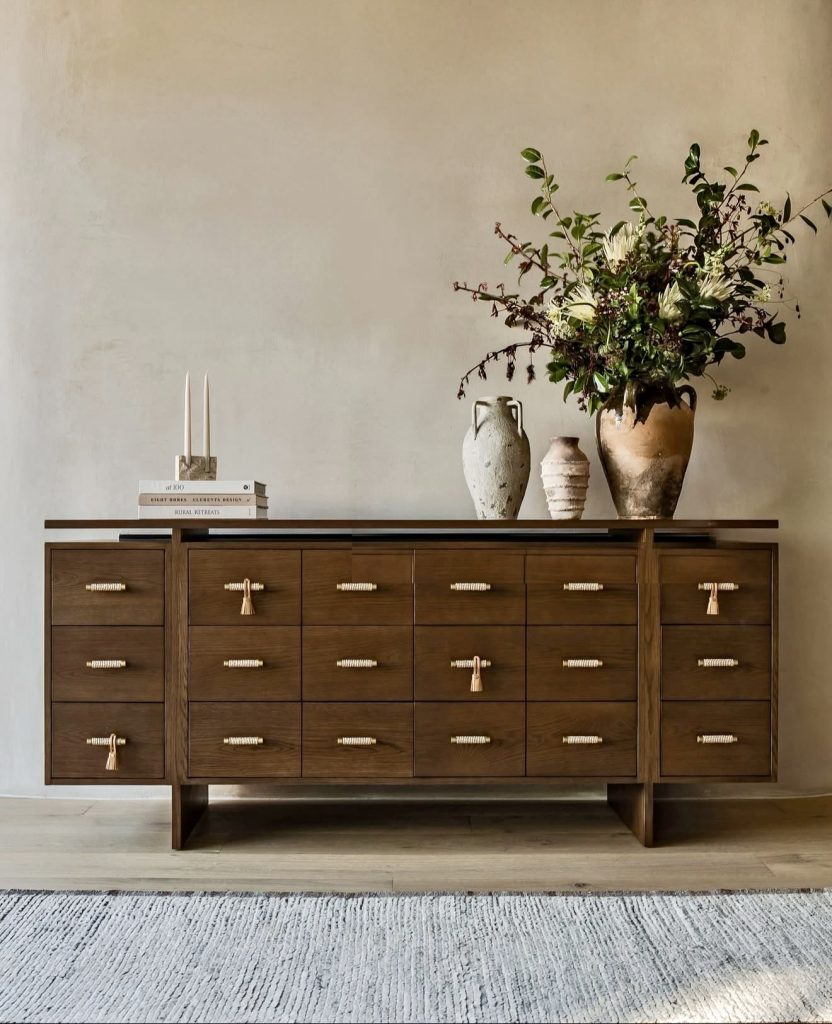The beauty of this perfectly designed setup is that it is in tune with 2026 designers’ travails to make this new season more natural and more indigenous. The touted wooden and rope-tied designer dresser is a beauty in itself. The designer ceramics and vase setup will give you a hint about its affinity to a sophisticated master bedroom scenario like those in Elle Decor. The soup-and-shelf effect will balance this natural versus designer setup. It’s a testament that wood tones will always remain a staple for those designing a natural and contemporary space that is both earthy and artful.