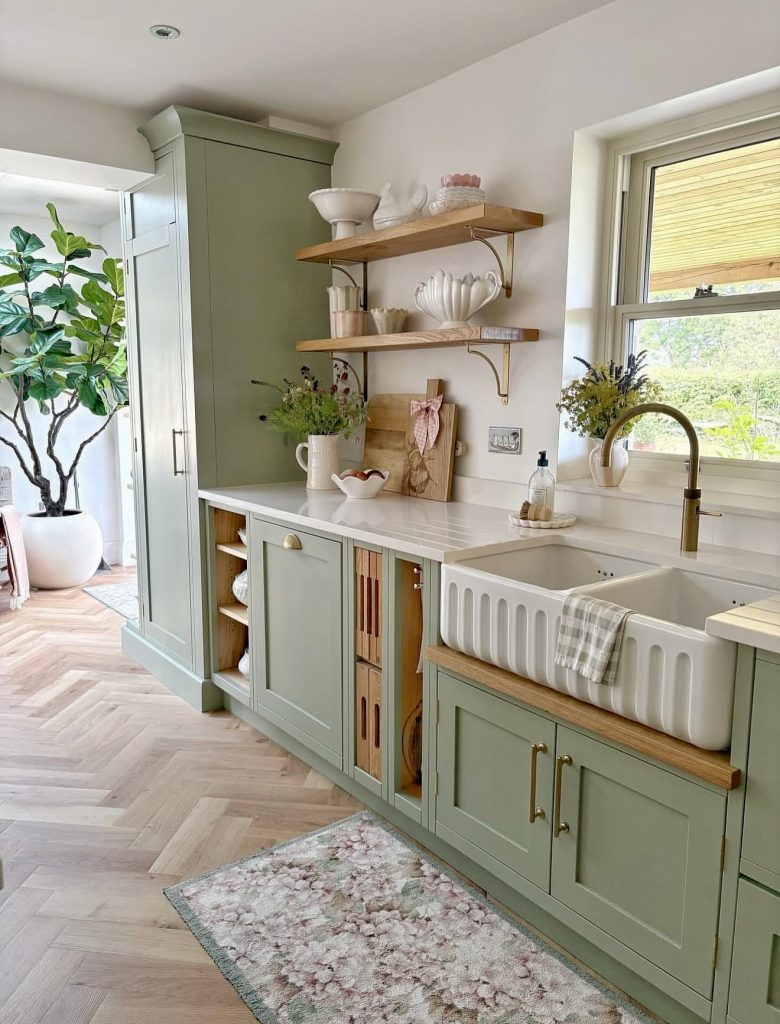 2. Sage Serenity in a Modern Farmhouse Kitchen