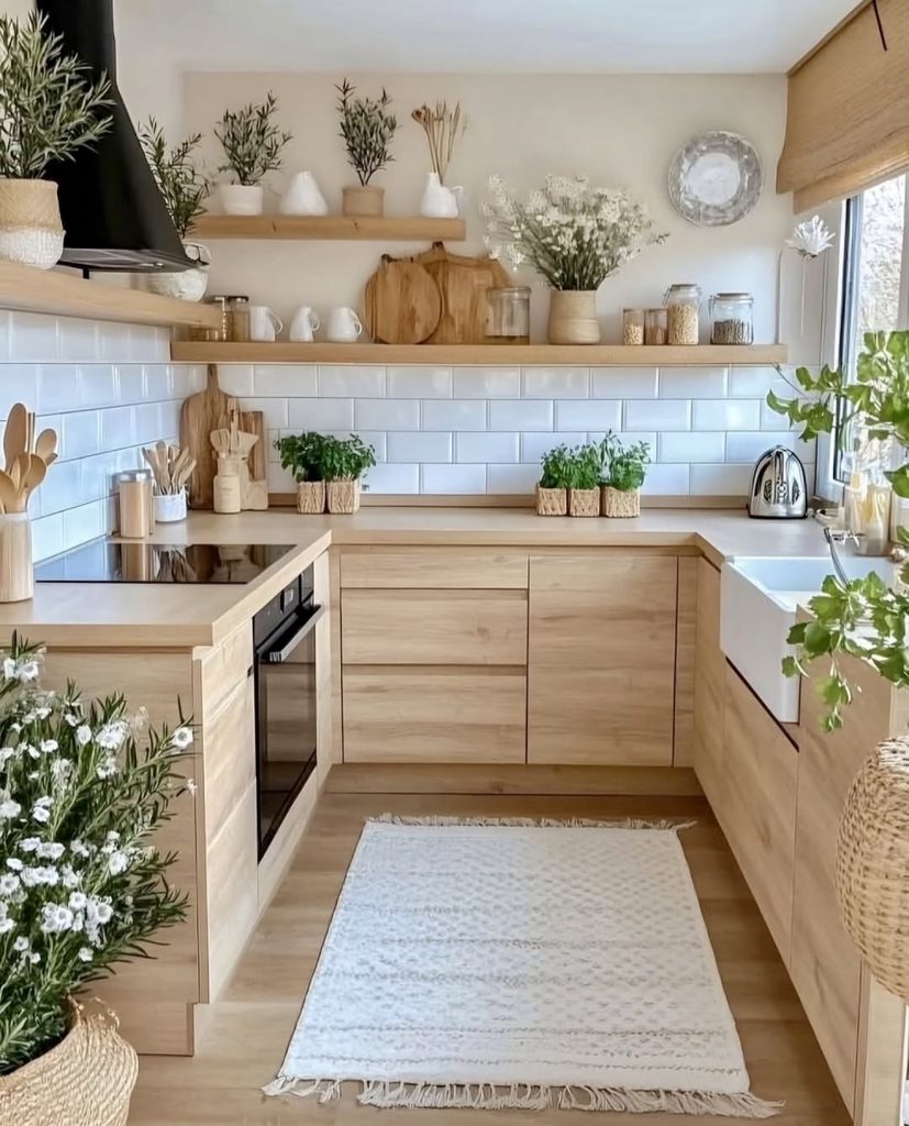 21. Natural Wood and Greenery in a Modern Farmhouse Kitchen