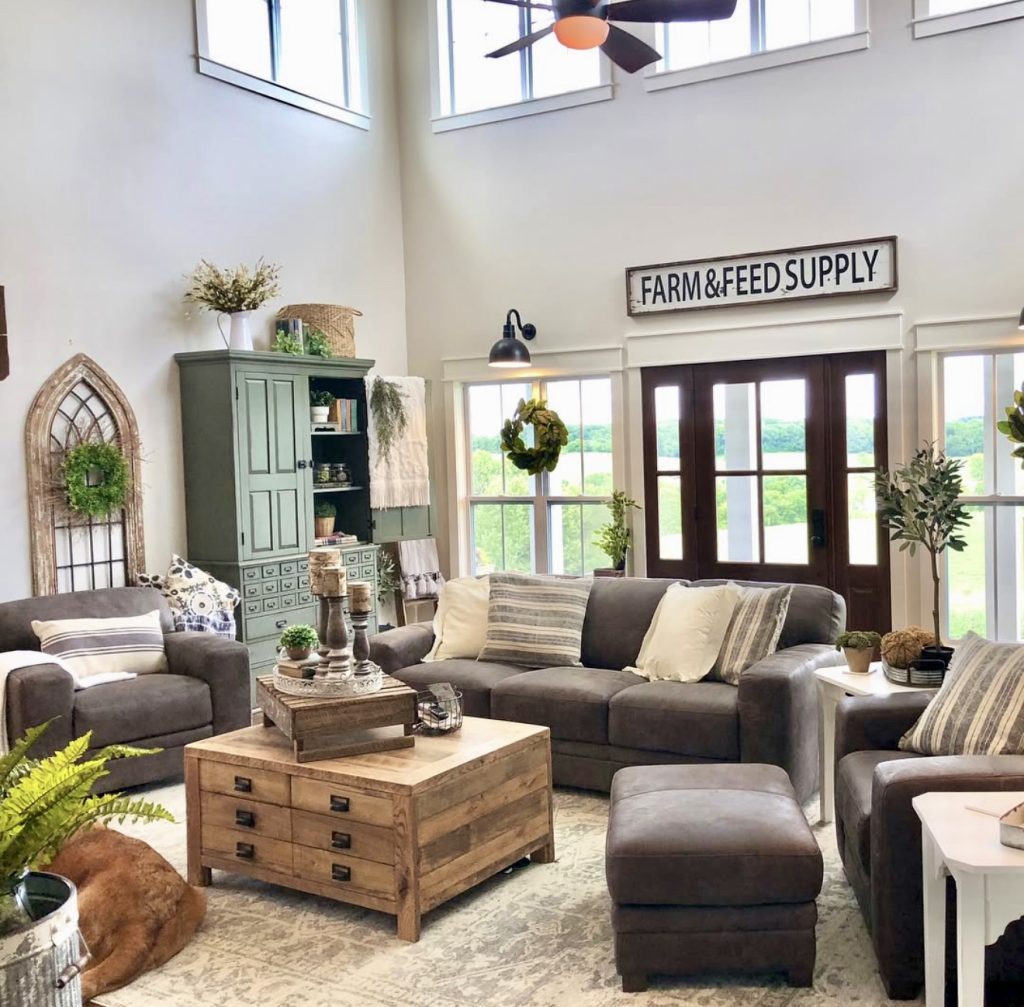 29. Grand Farmhouse Living Room With Modern Touches