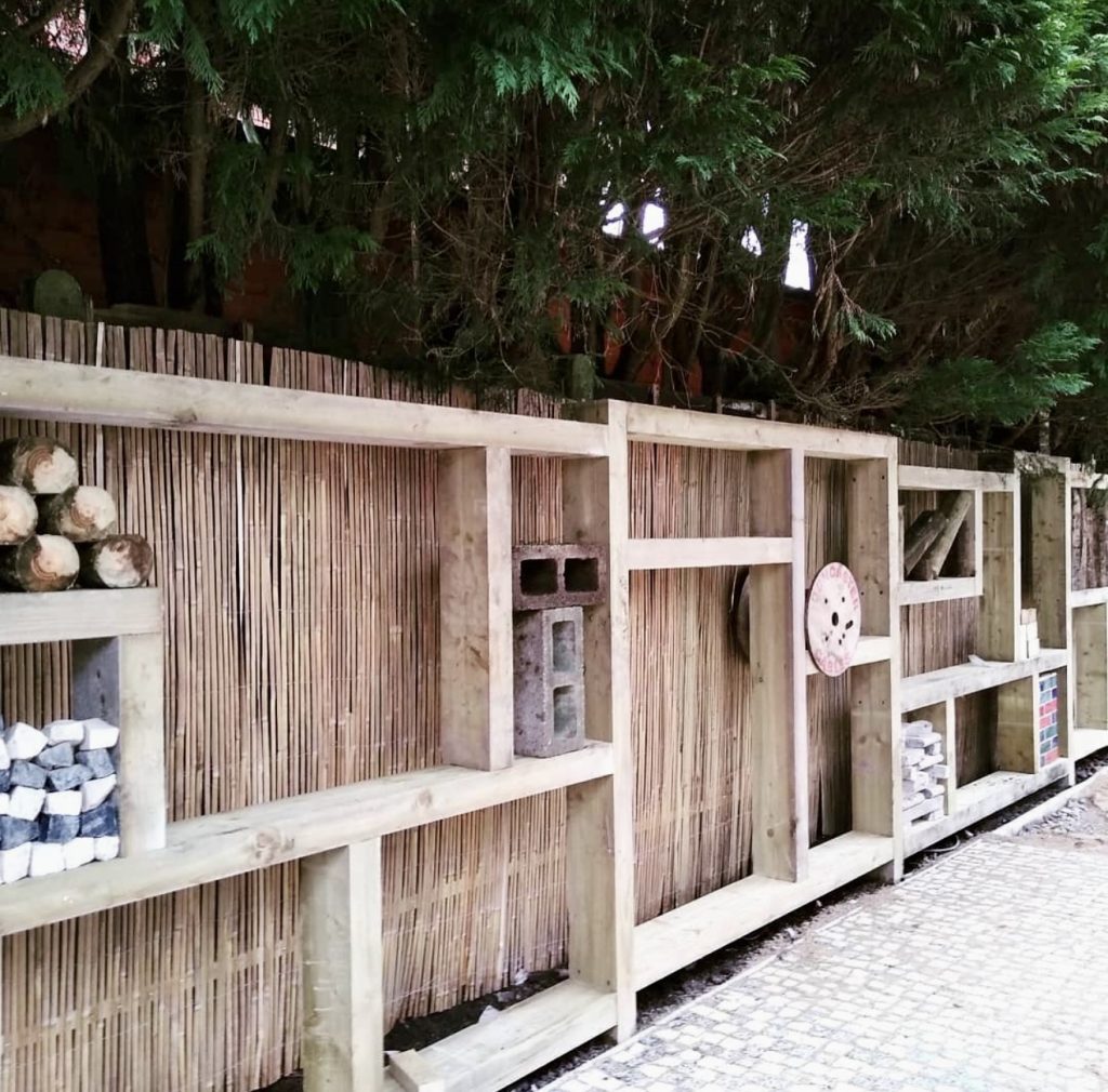 This inventive project showcases what can be achieved with a bit of DIY spirit and a willingness to experiment. A bamboo or reed base offers a lightweight, natural foundation, while the overlay of chunky timber framing creates geometric compartments that can be filled with small elements like cut logs, stone, or other textural accents. It’s a smart way to blend affordability with function, making it a strong contender for homeowners seeking cheap yet visually compelling fencing solutions. Because the structure is semi-open, it works nicely for gardens, allowing airflow while still defining the boundary, and its rustic-meets-modern personality fits beautifully in cottage- or farm-inspired outdoor spaces.