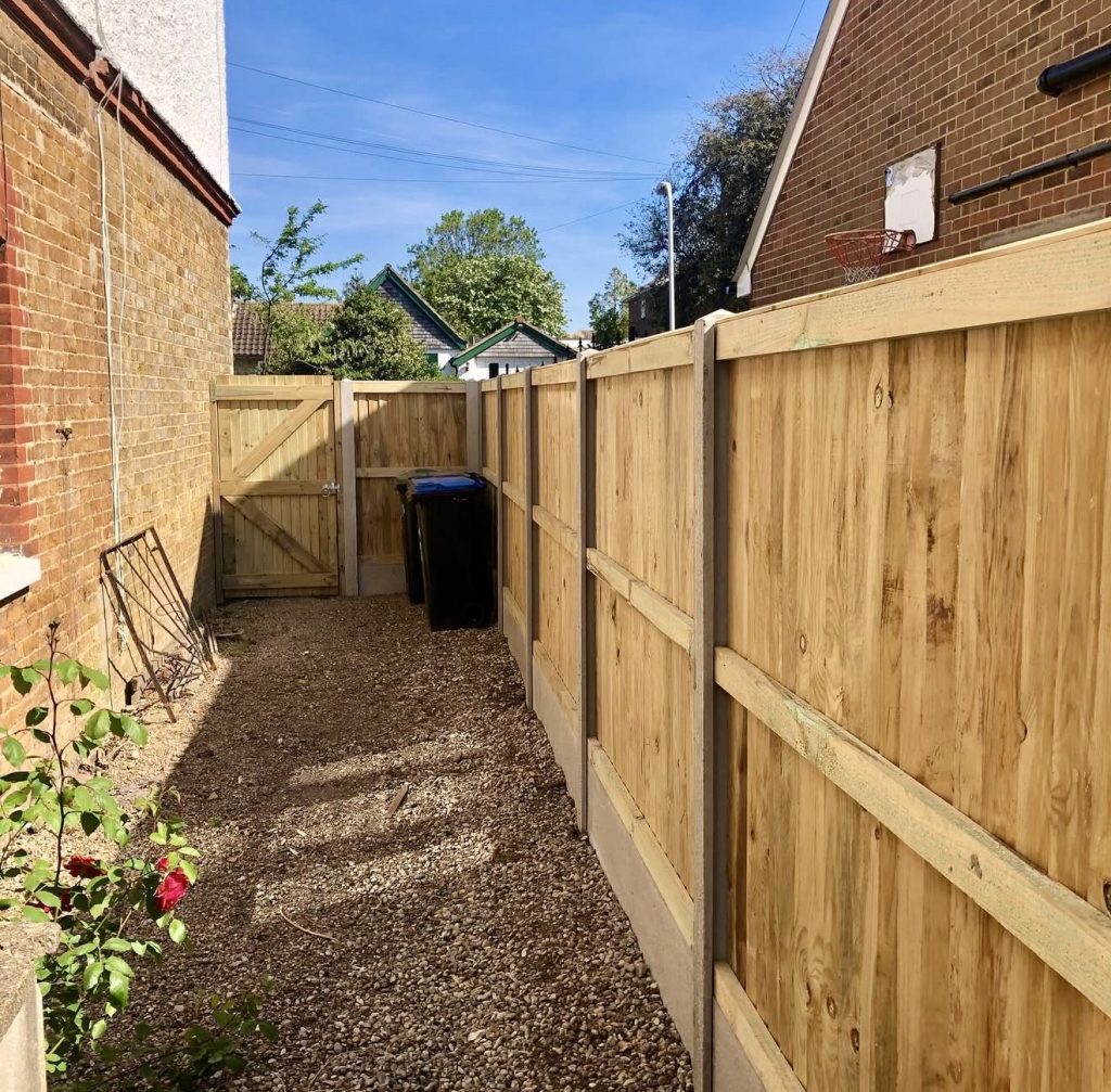 Standard timber panel fencing remains one of the most reliable choices for side yards, especially when the goal is a straightforward structure for privacy without drawing too much attention. This setup is durable, low-maintenance, and secure for dogs, making it a practical option for families who want to keep pets safe while also maintaining a tidy pathway between homes. Its warm, wooden tone softens the surrounding brick architecture and complements gravel surfaces, offering a cohesive, understated look. For homeowners who prioritize long-term function over designer aesthetics, a wooden fence continues to be one of the cheapest and most accessible fencing types on the market.