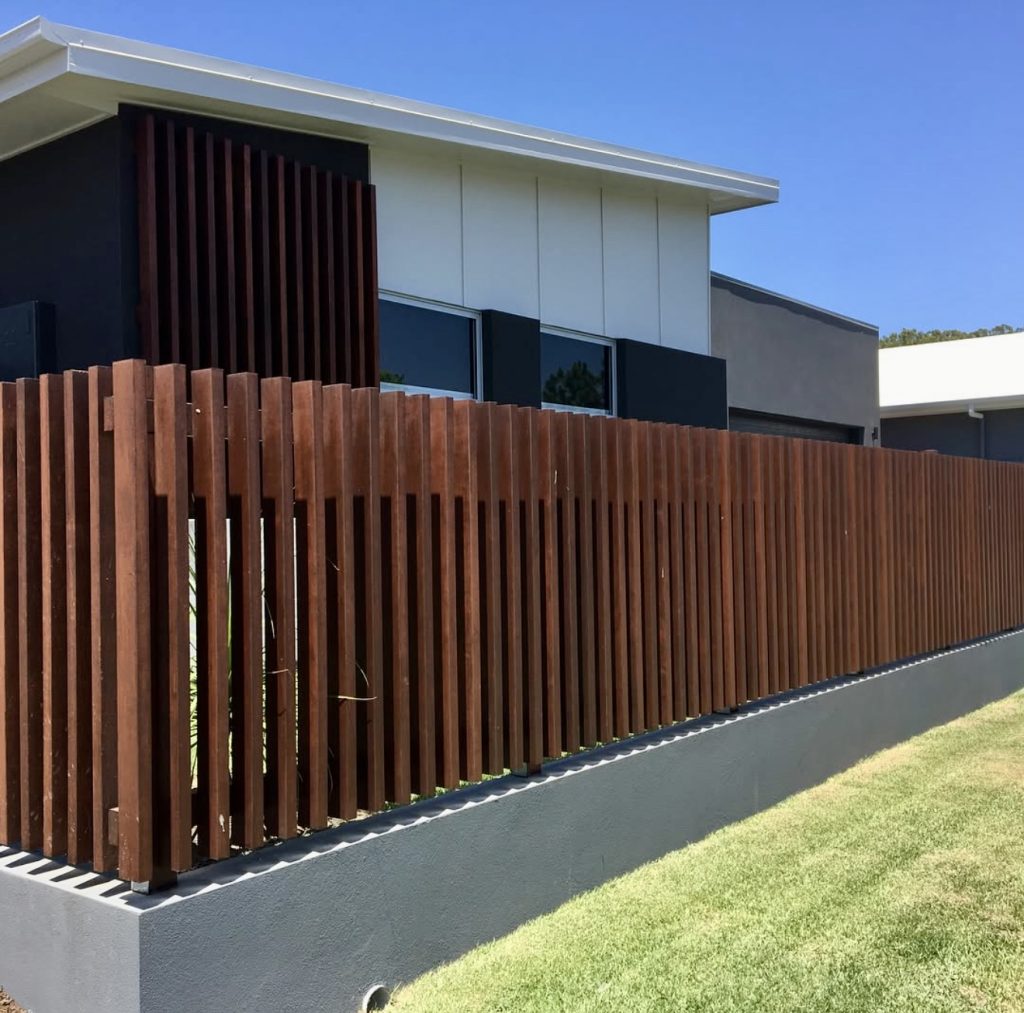 A bold curved metal screen transforms boundary fencing into a sculptural architectural statement, ideal for modern homes where design is as important as function. The tall, evenly spaced slats offer a dramatic play of light and shadow throughout the day while still providing enough enclosure for privacy around terraces or upper-level living spaces. This style has gained traction in cutting-edge builds across Australia and coastal U.S. regions, where homeowners are excited to experiment with materials beyond wood. Though not the cheapest option, its durability and striking presence make it a standout for those seeking truly distinctive exterior designs.