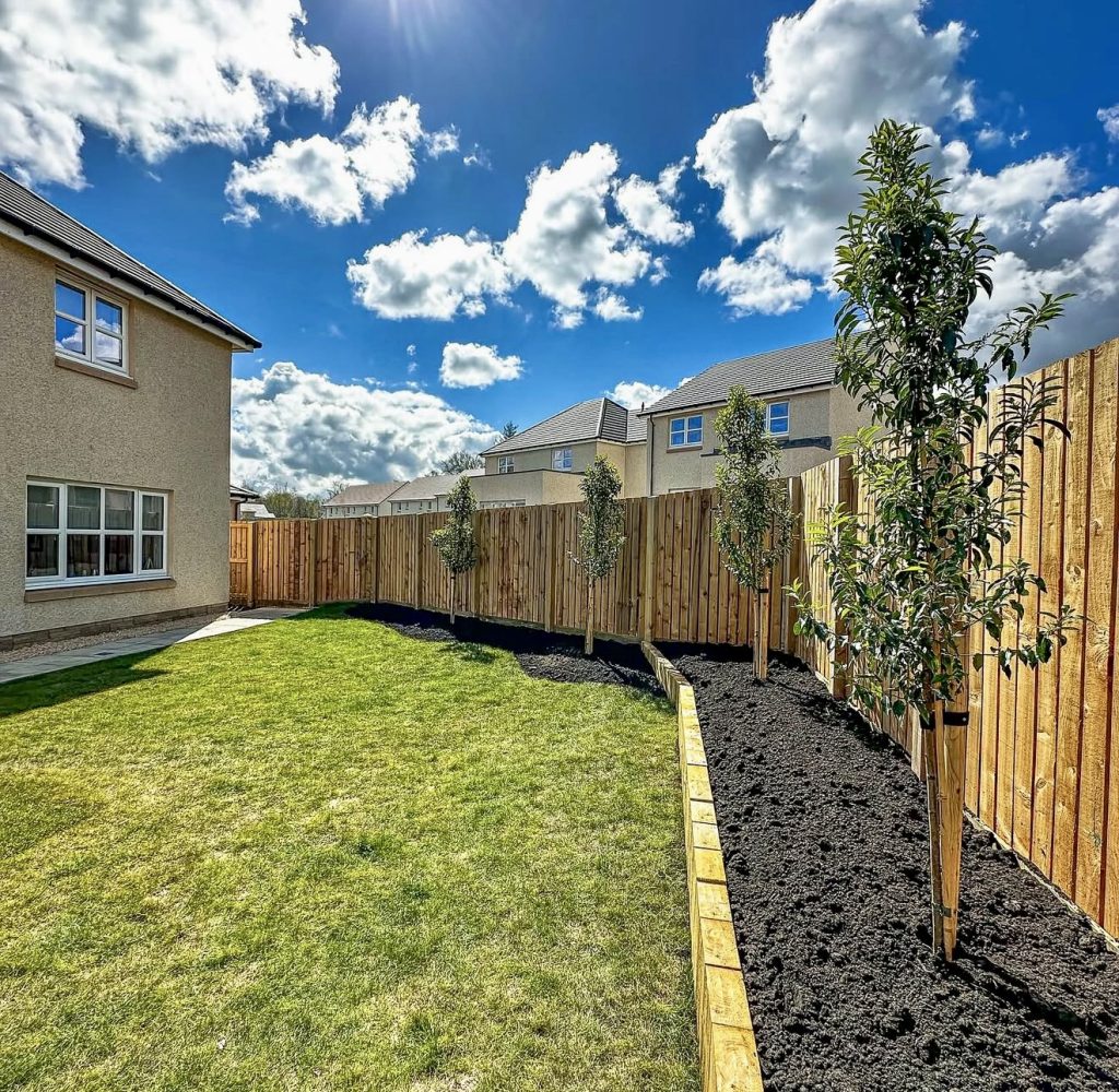 Fresh timber panels lining a wide suburban backyard create a clean, cohesive boundary that instantly grounds the landscape, especially when paired with young trees and newly planted beds. This type of fencing is a reliable option for dogs, as the continuous vertical boards prevent gaps while still offering an inviting, polished aesthetic. It’s also one of the most common choices for new construction across the U.S. and UK, thanks to its affordability, versatility, and straightforward maintenance. For families looking to transform a bare plot into a warm, livable yard, a simple wooden privacy fence remains a timeless starting point.