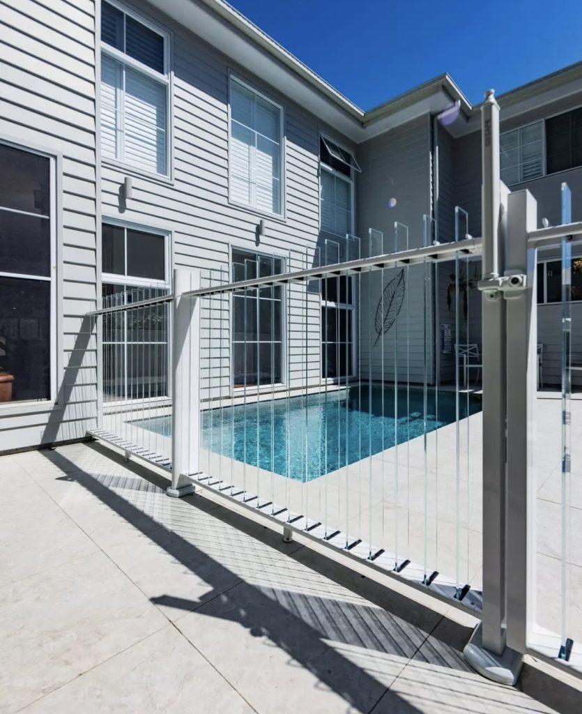 The open vertical fence gives the required safety and protection around pools. The lines added to the design create ease and flow to complement the modern exterior while ensuring that the fence doesn’t become an afterthought to the design. It also provides a major sightline safety advantage that’s essential to homeowners with young children or active pets. The continued trend towards minimalism in resort-style pool areas has kept this simple and seamless design in high demand, and rightfully so.