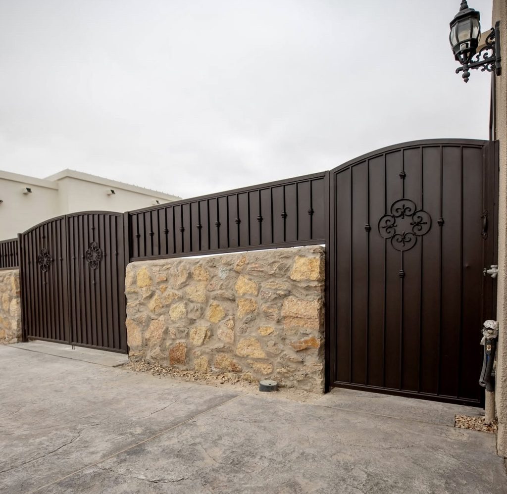 A stone base paired with an arched metal fence creates a stately look that feels equally suited to farm-style estates and elegant suburban homes. The combination brings old-world durability with modern security, making it a wonderful choice for large property owners who need structure without losing architectural charm. This style excels for dogs, adds height for privacy, and withstands weather conditions far better than the cheapest timber options. Its refined metalwork adds an artistic flourish, proving that functional fencing can still contribute to the character and identity of a home.