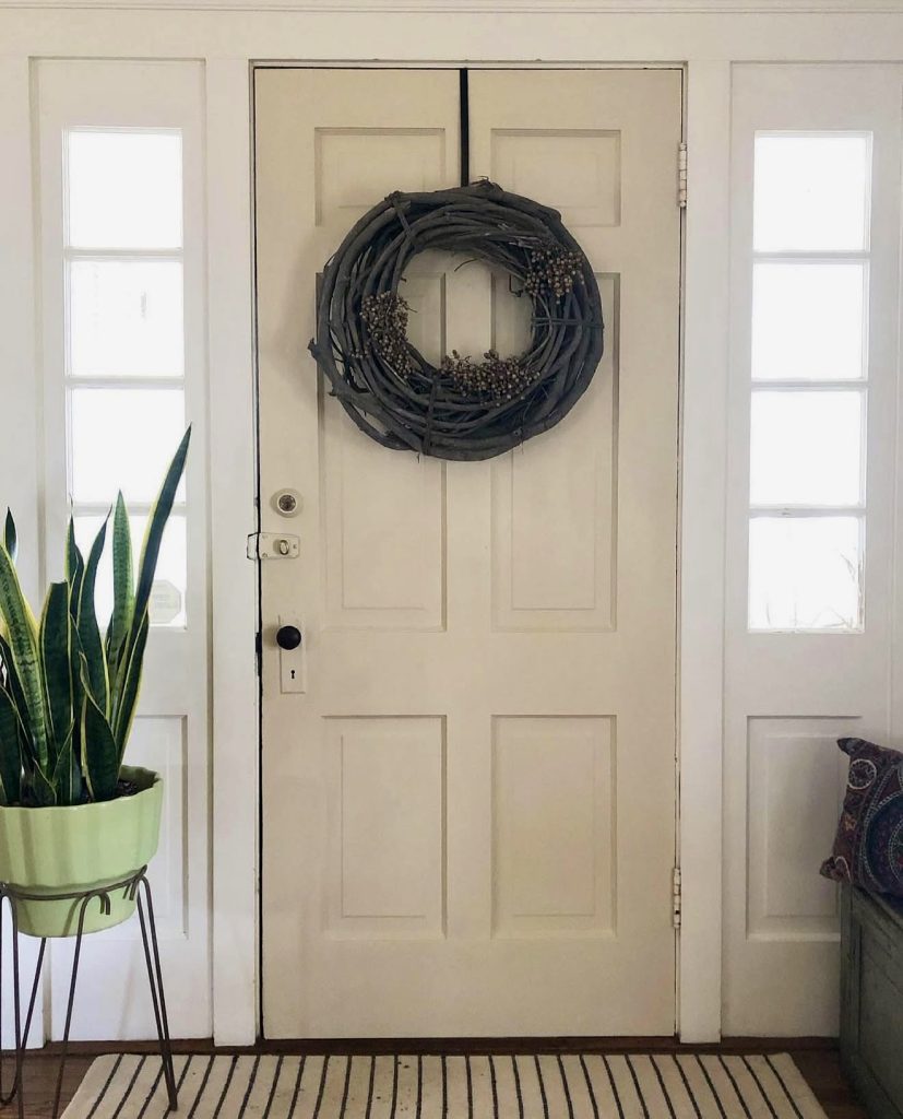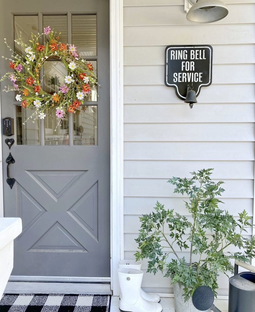 This charcoal door stands out for being the perfect décor for people who dwell in gray houses or tan houses by balancing the outdoors effectively. However, adding the floral wreath on the door brings the much-needed playful pop of color on the charcoal door out. Adding the vintage bell nearby also brings their much-needed personal touch to the door makeover. According to many inspiring designers in the U.S. today, adding personal touches surrounding the house’s main entrance gives the whole place its much-needed ‘lived in’ atmosphere by excluding the influence of staging. This charcoal door works best on houses made from green siding along with creamy neutral hues.