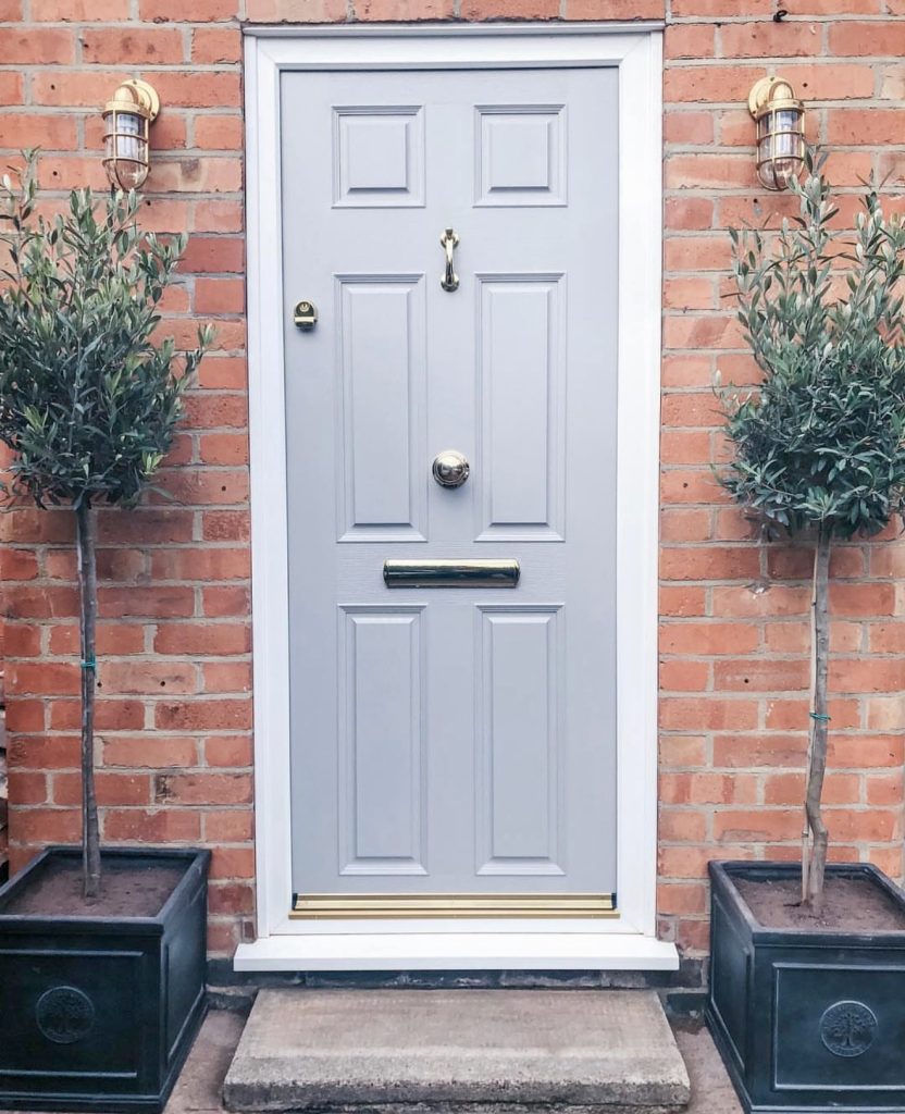 This soft gray door color is perfect for the home that uses red bricks on the outside for its very cool contrast effect in producing the curb appeal. Gray also represents one of the top picks in the 2026 color reformation for its ability to work particularly well in combination with some polished brass fixtures. Typically, designers will suggest that if you already have striking texture on the outside of your house in the form of classic American brick siding, then a cool, soft door color will provide the perfect contrasting backdrop. This particular color choice is soft yet elegant, the perfect choice for homeowners who want their curb appeal to be both deliberate and timeless.