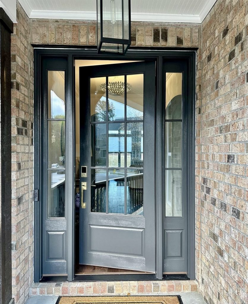 Deep charcoal paired with sidelights is the perfect contrasting choice for the outside of the house if the color is made from brown bricks. Deep charcoal continues to prove popular in the 2026 door color trends because it’s the perfect combination for people who want to veer from the gray color spectrum but don’t want to go for pure black either. This color choice works particularly well if the outside door hardware is made from brushed metal. Additionally, the clear glass complements the color choice very nicely. Such a color choice works very well for both new homes and older homes because of its ability to provide sufficient curb appeal.