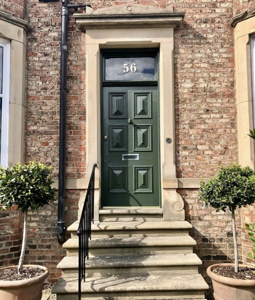So many different heritage greens jump out in the 2026 trends for their ability to beautifully complement the aged color of a brick house. But one of the most striking aspects of the color choice is how stately it looks. While bold enough to stand out in the landscape, the color choice lacks the in-your-face attitude that some people might expect from something called ‘deep heritage green.’ Additionally, because the color works so well in complementing the aged color of the stone, the whole door looks like it belongs in history. That’s not something many people want from their door color choice.