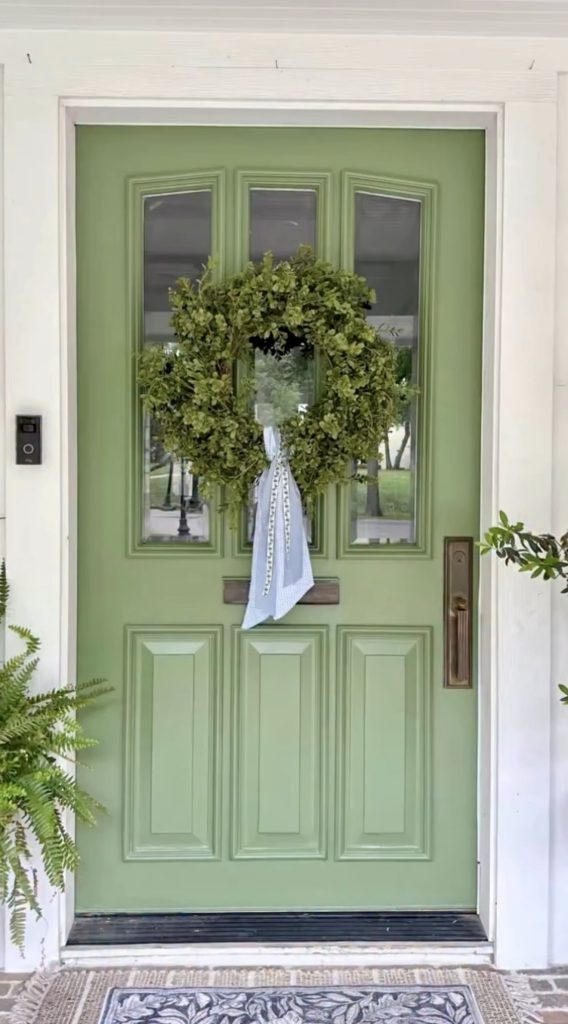 Of all the different alternatives out in the 2026 color guide for front door color ideas in the home, few are better at adding freshness to the scene than the soft sage green door color choice. Designed to work in harmony with the landscaping surrounding the home’s façade instead of being the focal point in the room like some color ideas might normally do, the soft sage green door color choice is one that works beautifully on all types of homes, from the tan house to the beige house. Really, the soft sage green door color choice works beautifully on any home.