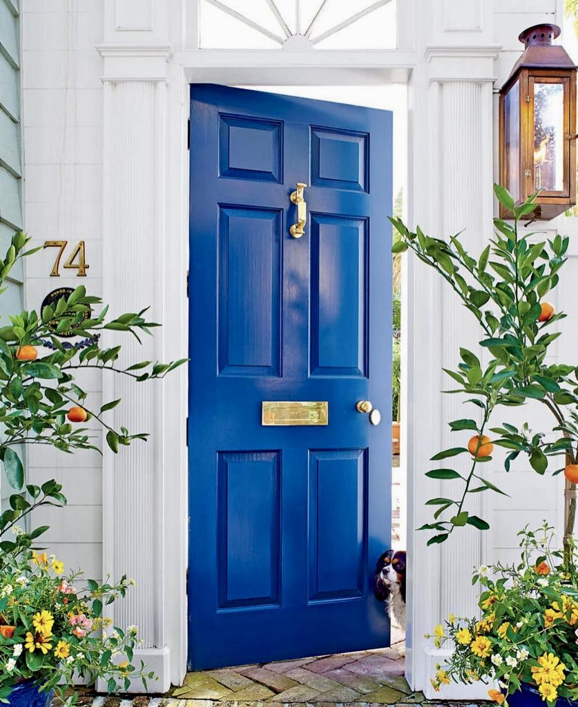 Compared to some of the other color options in the image links below, blue is one of the boldest door color choices out there. This blue door in particular stands out because it supports everything from tan house shingles to cool white. This color supports all types of homes because it’s bold enough to stand out on its own without being too much. It’s perfect for someone who wants the feeling of walking into their home in the image above.