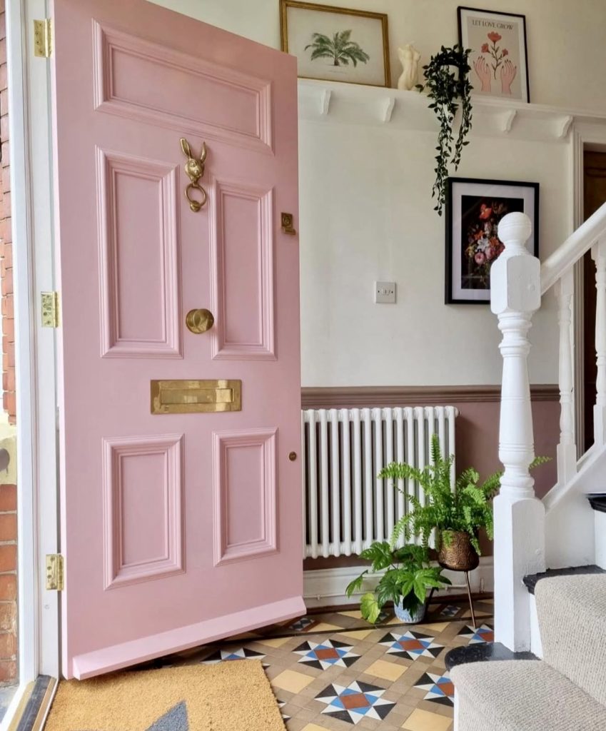 Modern dusky The pink door painting is the perfect representation of the color being playful. This door color in the image below is perfect for someone who wants something different from the normal door color picks for 2026. Pink door painting works very well on homes made out of either color because it gives the needed warm effect that won’t clash. This color also produces the perfect effect by giving the homeowner the fun feeling of entering their homes in the image.