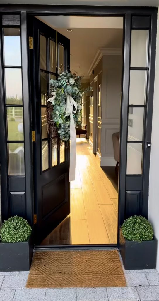 However, for people who want elegance in their homes without the effort of painting the door every now and then in 2026, the best option is the classic black door color. That color works very well on every form of house shingles. However, the color looks good because of the finish. Additionally, the color works very well on different houses. Hence, the color’s elegance is ideal for everyone. Together with the soft winter plants and symmetrical planters, the entryway looks finished and carefully designed in the aesthetic that real estate agents say automatically improves curb appeal.
