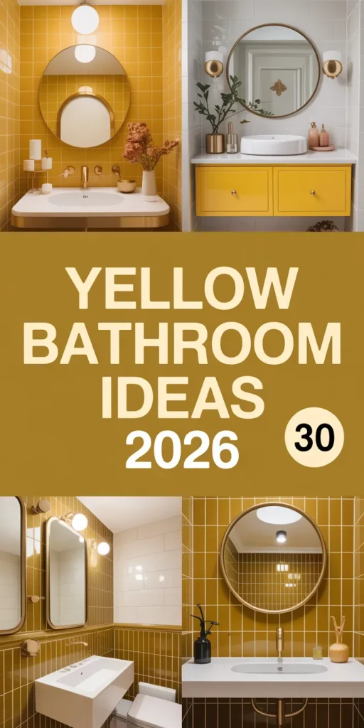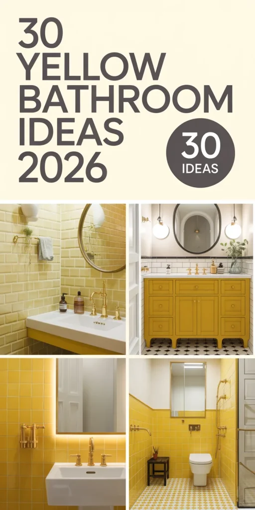 There you have it—30 genuinely inspiring ways to bring the sunshine into your bathroom in 2026. From bold, modern statements to cozy, traditional retreats, yellow proves to be an incredibly versatile and uplifting choice. Whether you’re tiling every surface or just adding a few vibrant accents, remember to keep your personal style and practical needs in mind. Ready to create your own ray of sunshine? Start saving your favorite looks to Pinterest now, and let these ideas guide your journey to a brighter, happier bathroom!
