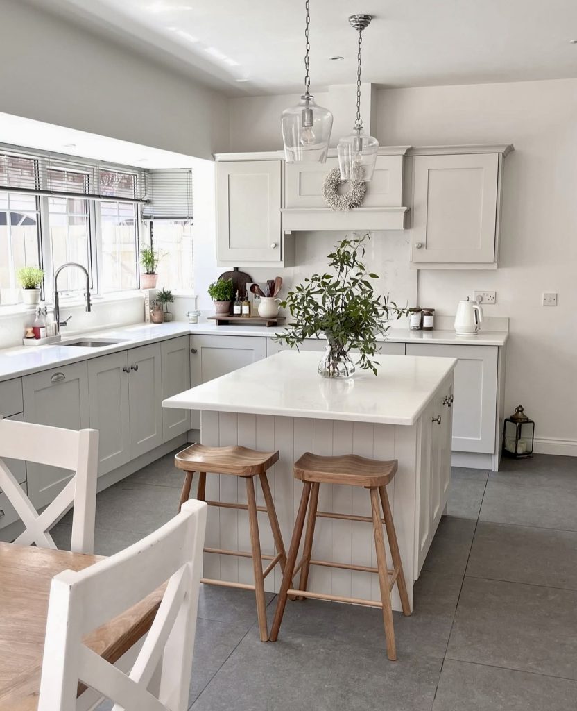 6. Light-Filled Neutral Kitchen With Fresh Greenery