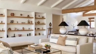 In this room, you find both modern lines and cultural touchstones throughout. The light walls and beige sofas balance the room and the carved art and pottery make it memorable. Earthy and sophisticated styles are achieved with muted shades and a smooth coffee table. Proof that a cozy room can still feel tidy is shown in 2025 homes that mix minimalism with global trends. It follows the classic look, without appearing old-fashioned.