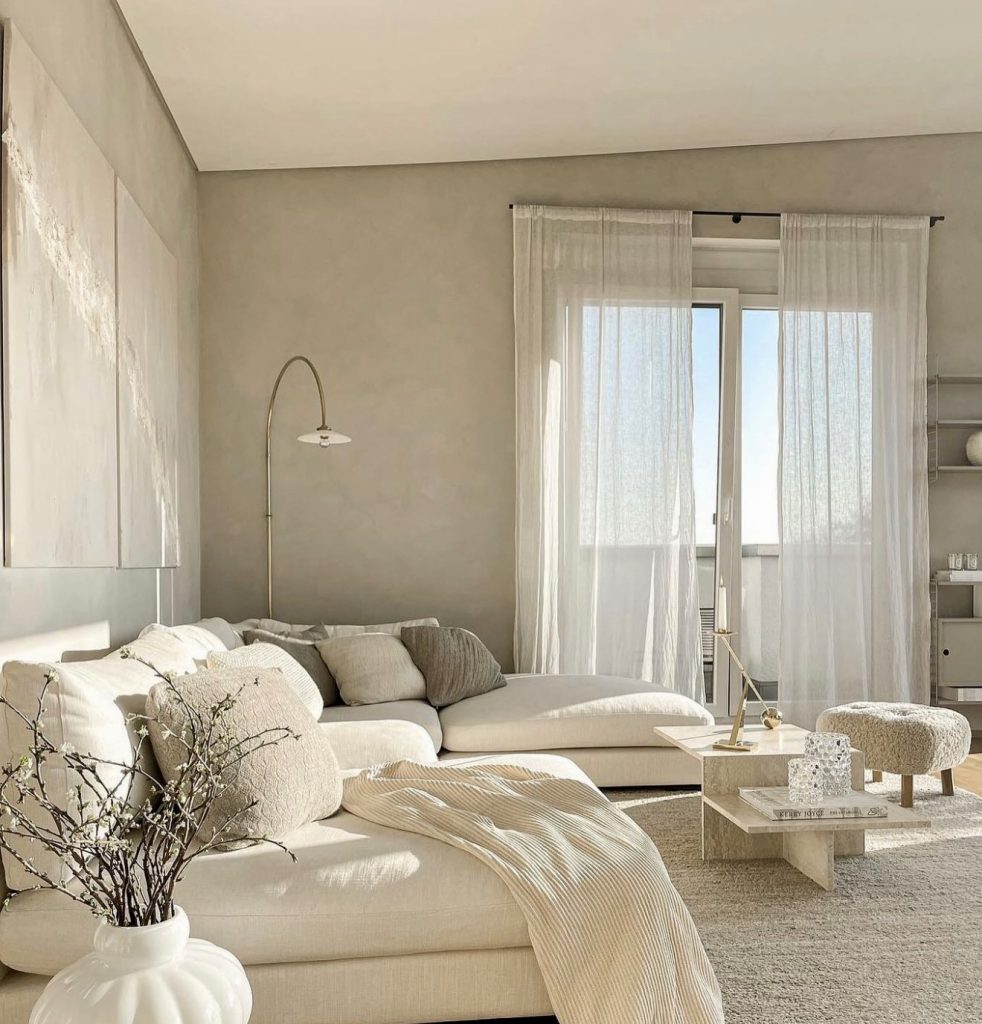 Few looks are as universally appealing as warm neutral walls. This beige-toned palette represents one of the most timeless ideas neutral for living room paint colors 2026. Its understated tone maximizes natural light, giving the space an airy, serene quality. The pairing with plush textiles and layered ivory furnishings shows why this is a go-to for ideas sherwin or ideas behr enthusiasts. It’s also perfect for those who want their paint to quietly support bolder accents, whether that’s art, furniture, or seasonal décor. Think of this as the best backdrop for both flexibility and longevity.
