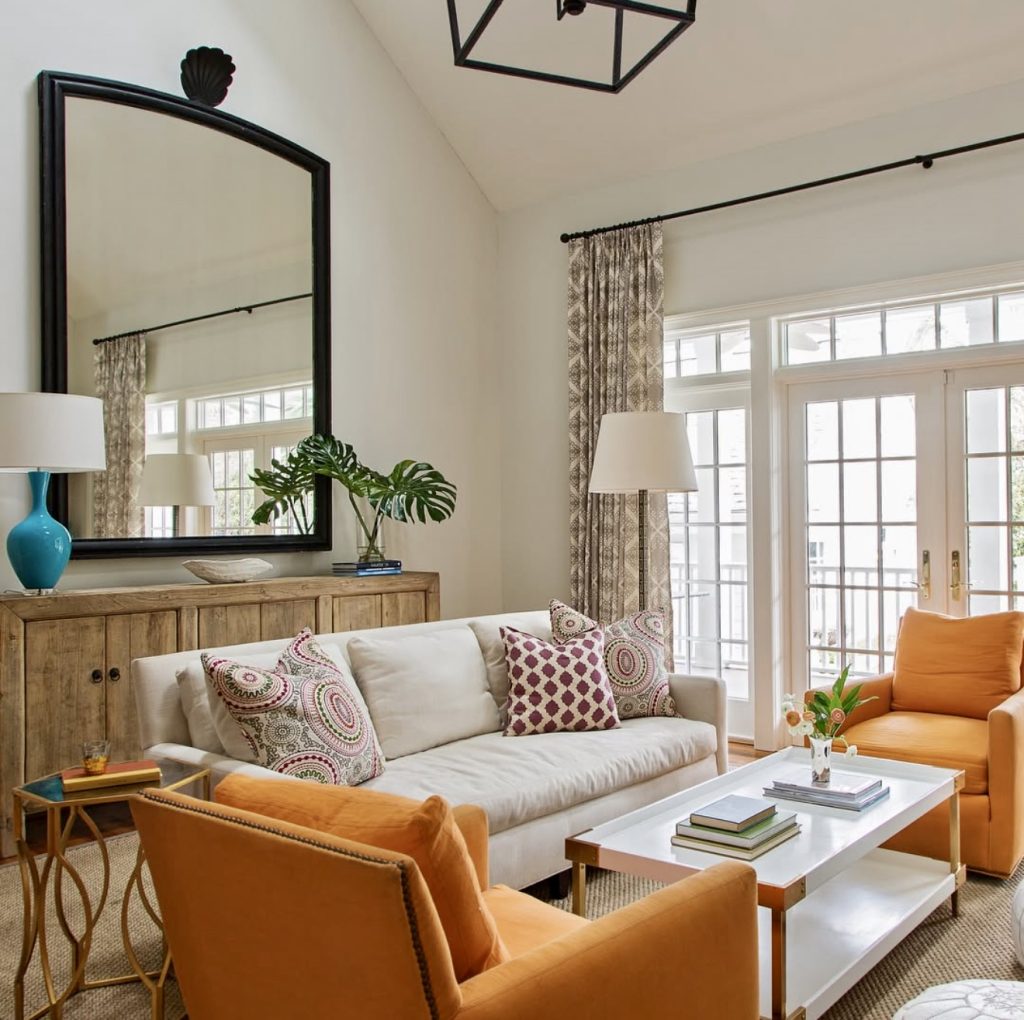 For those who want a versatile backdrop, light walls in creamy white or off-white remain among the best living room paint colors 2026. This design highlights how neutral tones can act as a canvas for bold furniture—like orange chairs and patterned pillows. The airy palette works beautifully with natural light, making it a smart option for homes that want adaptability. It’s a perfect example of ideas neutral that never go out of style while letting color and texture take center stage. This approach also leans into modern farmhouse aesthetics when paired with wood accents.