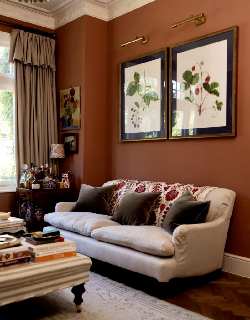 Terracotta is surging in popularity among living room paint colors 2026, offering an earthy, inviting option for homeowners who want to move beyond traditional neutrals. The color sits beautifully between warm neutral and moody, depending on lighting. Paired with natural textiles and vintage artwork, this palette shines in rooms with ideas dark wood floor or classic trim. It’s also an excellent example of ideas with accent wall for those who want color but still value coziness. Designers note that terracotta works well across seasons, providing both summer warmth and winter comfort.